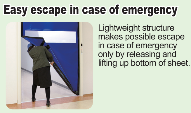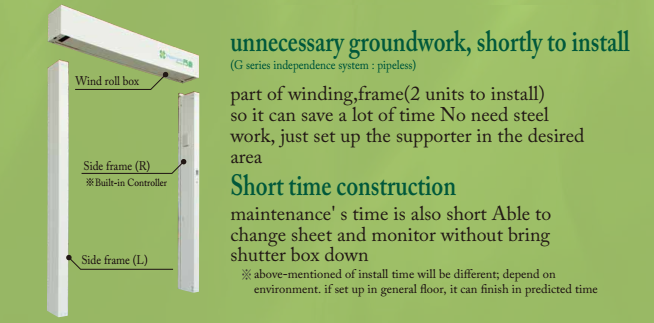- Mành cửa thiết kế nhẹ, trong trường hợp khẩn cấp có thể kéo mành cửa lên dễ ràng và nhẹ nhàng.