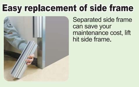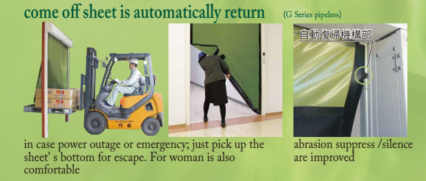 - Cơ chế tự sửa chữa khi gặp sự cố về mành cửa. Cửa hoạt động đảm bảo an toàn & bền bỉ. Mành cửa sẽ tự đảo ngược với tốc độ 1,5m/s nếu photocell sensor dò thấy vật cản, và tự đảo ngược với tốc độ 0,5m/s nếu trong trường hợp sảy ra va chạm.