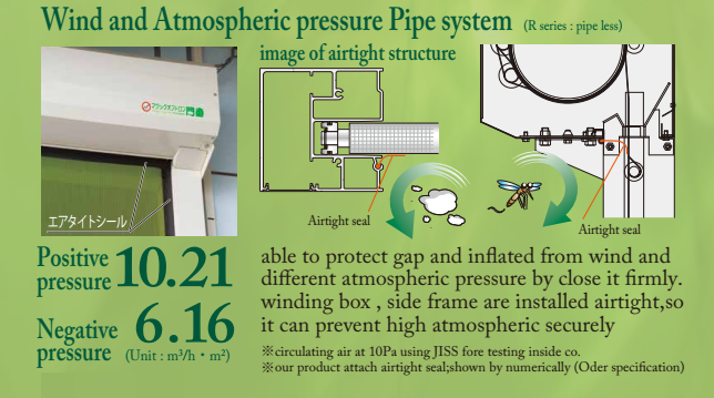 - Đối với môi trường có chênh lệch về áp suất, cửa được sử dụng thêm những thanh gia cố nằm ngang trên mành cửa, các gioăng cũng được bổ trợ thêm để tránh sự xâm nhập của côn trùng và chống bụi khi cửa bị phồng lên do chênh lệch áp suất. Cửa có thể sử dụng cho phòng có áp suất lên tới 10Pa.